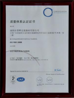 質(zhì)量體系認(rèn)證證書
